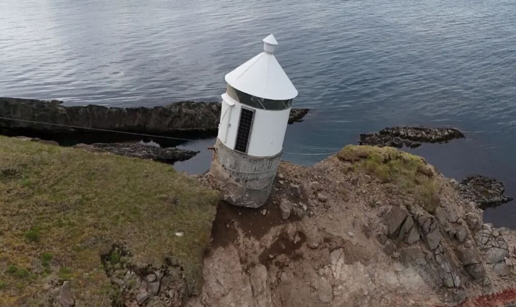 Latarnia morska, która stoi w najbardziej wysuniętej na północ części Eyjafjörður, spadła z fundamentów i jest mocno przechylona. Istnieje ryzyko, że spadnie z klifu do morza.