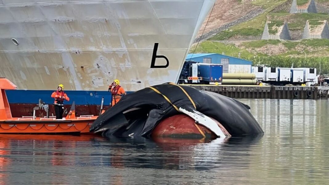 Załoga promu Norræna musiała usunąć martwego wieloryba, który utknął na dziobie jednostki. Wszystko wskazuje na to, że statek uderzył w zwierzę podczas rejsu z Wysp Owczych do Seyðisfjörður.
