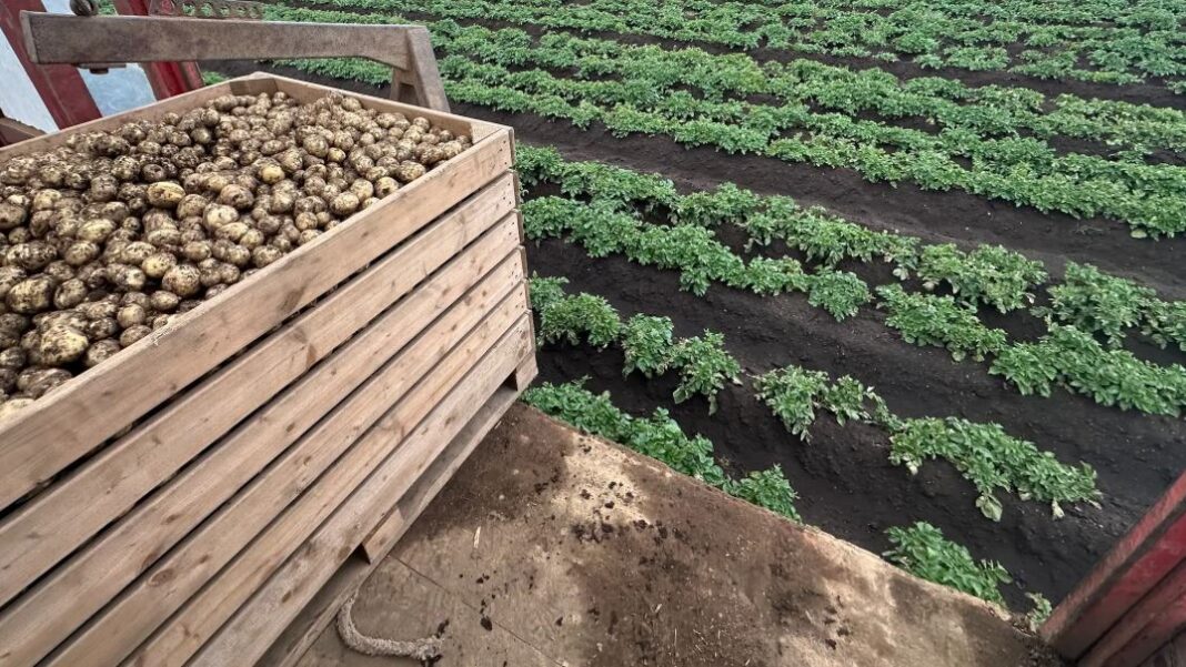Rolnicy z farmy Vesturholt w Þykkvabær zebrali wczoraj dwie tony młodych ziemniaków, a ich plony trafią szybko do sklepów. To pierwsze zbiory w tym roku, a rolnik zapowiada udany ziemniaczany sezon.