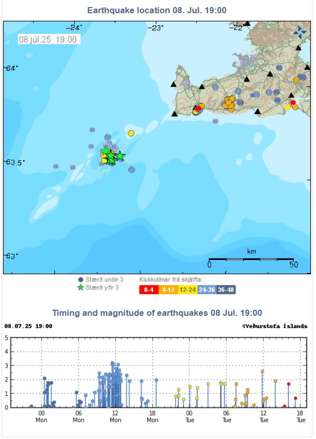 Islandzki Instytut Meteorologii zarejestrował dziś rój trzęsień ziemi na Grzbiecie Śródatlantyckim w pobliżu skały Geirfugladrangur.