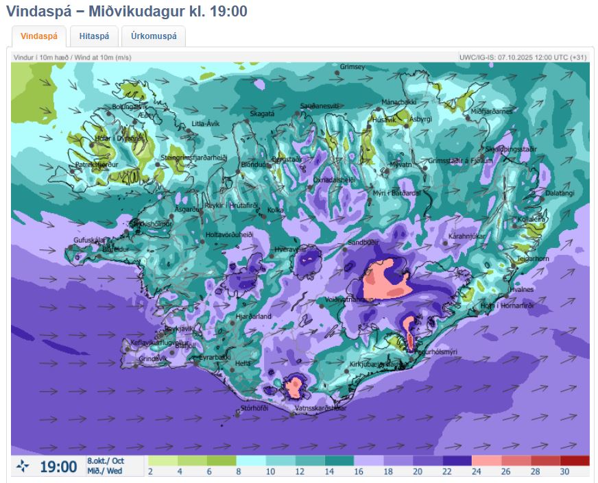 Islandzki Instytut Meteorologii wydał na jutro żółte ostrzeżenia pogodowe dla południowej połowy kraju z powodu silnych wiatrów i sztormu. Pogoda zacznie się pogarszać od południa, a sztorm potrwa do wieczora na południowym zachodzie i do czwartku na południowym wschodzie Islandii do czwartku.