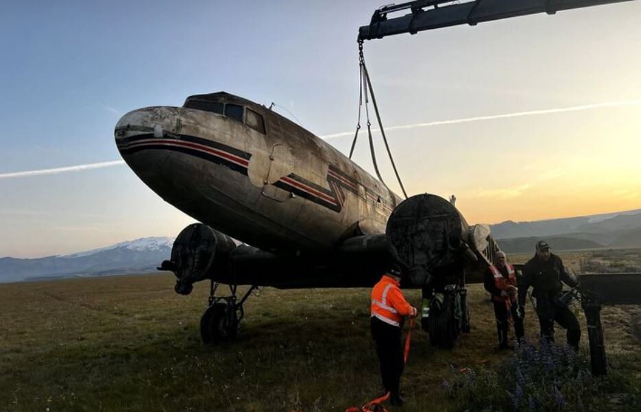 Gunnfaxi został przetransportowany z lotniska Keflavík w czwartek wieczorem na wschód od Sólheimasandur. Benedikt Bragason, przewodniczący Stowarzyszenia Właścicieli Ziemskich Ytri-Sólheima, powiedział, że postanowiono poczekać z ustawieniem samolotu na plaży.