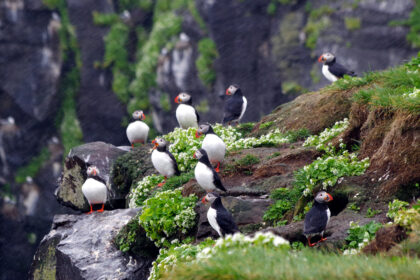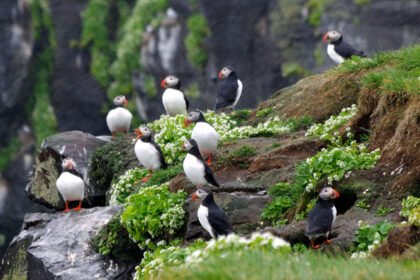 Maskonury widziane w Hafnarhólma na Borgarfjörður eystra i Grímsey