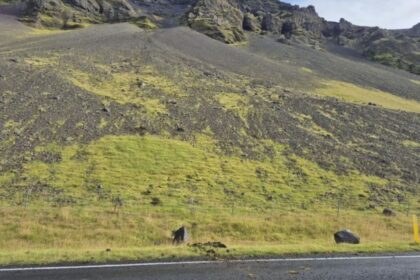 Kamienie ze zbocza Holtsnúp spadły drogę krajową