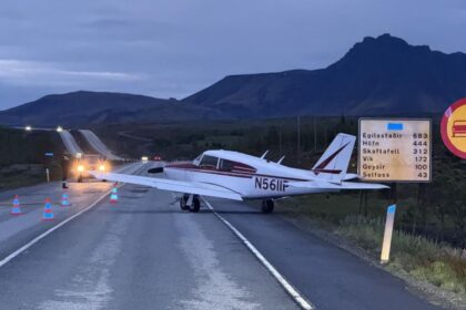 Awaryjne lądowanie na drodze Suðurlandsvegur